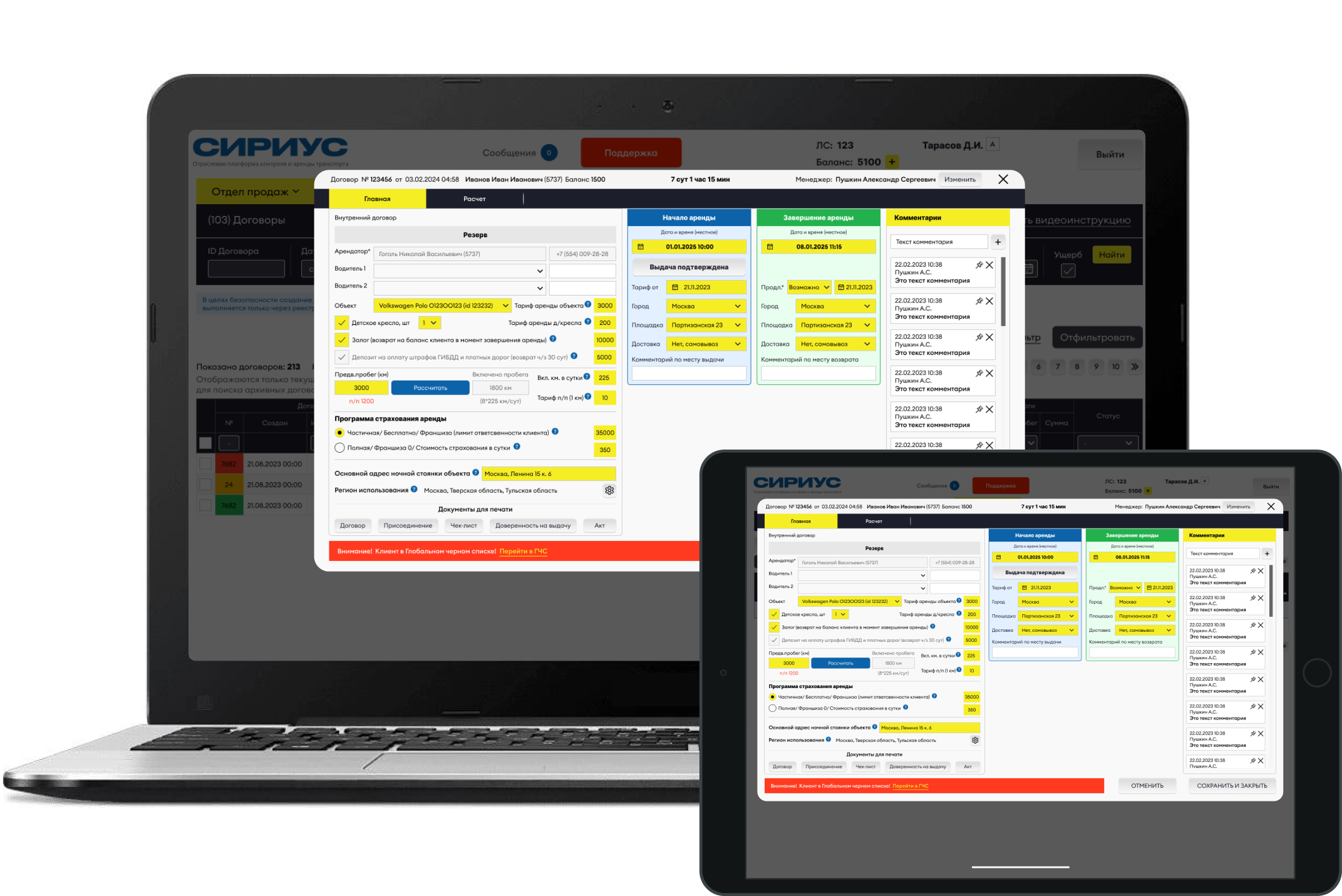 Если «Иванов» должник какого-то проката (из любого города России), Сириус предупредит вас об этом, когда «Иванов» к вам обратится (Сириус узнает «Иванова» по ФИО+ДР/ телефону или паспорту). То же касается и юридических лиц (телефон/ ИНН)