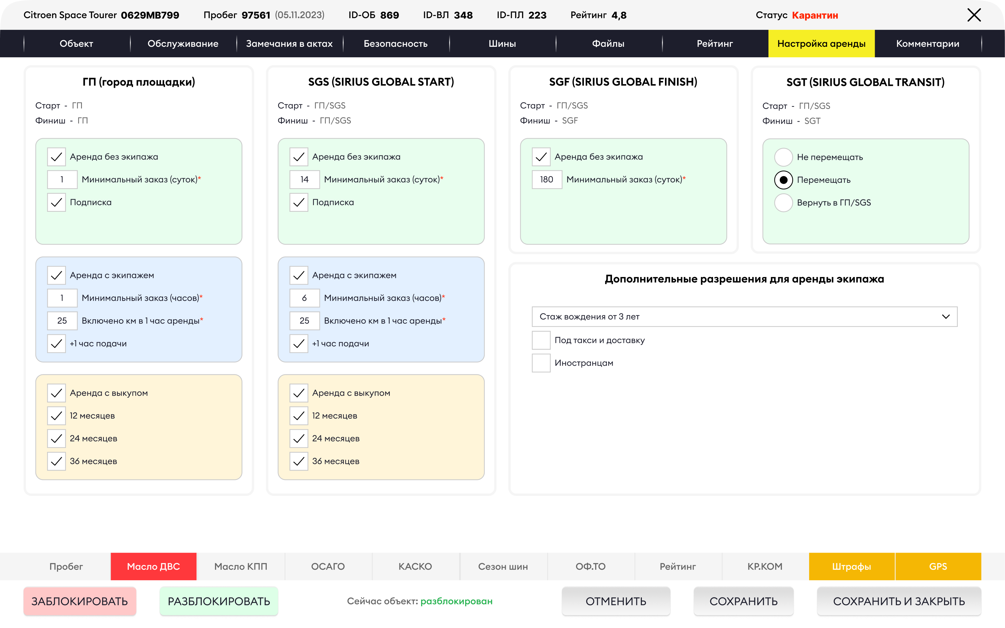 контроля обслуживания и аренды транспорта